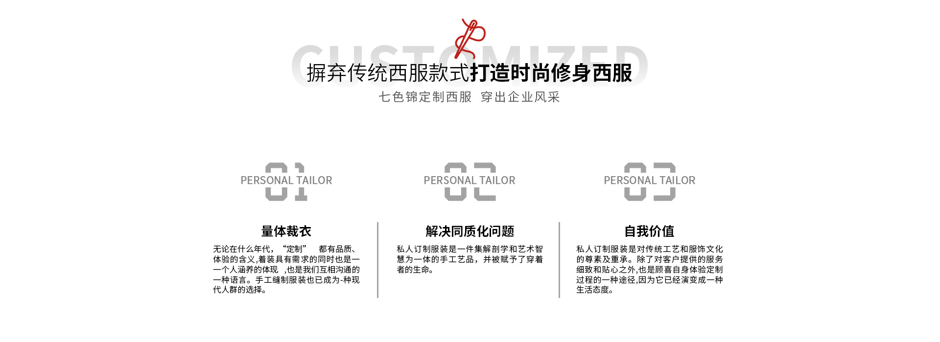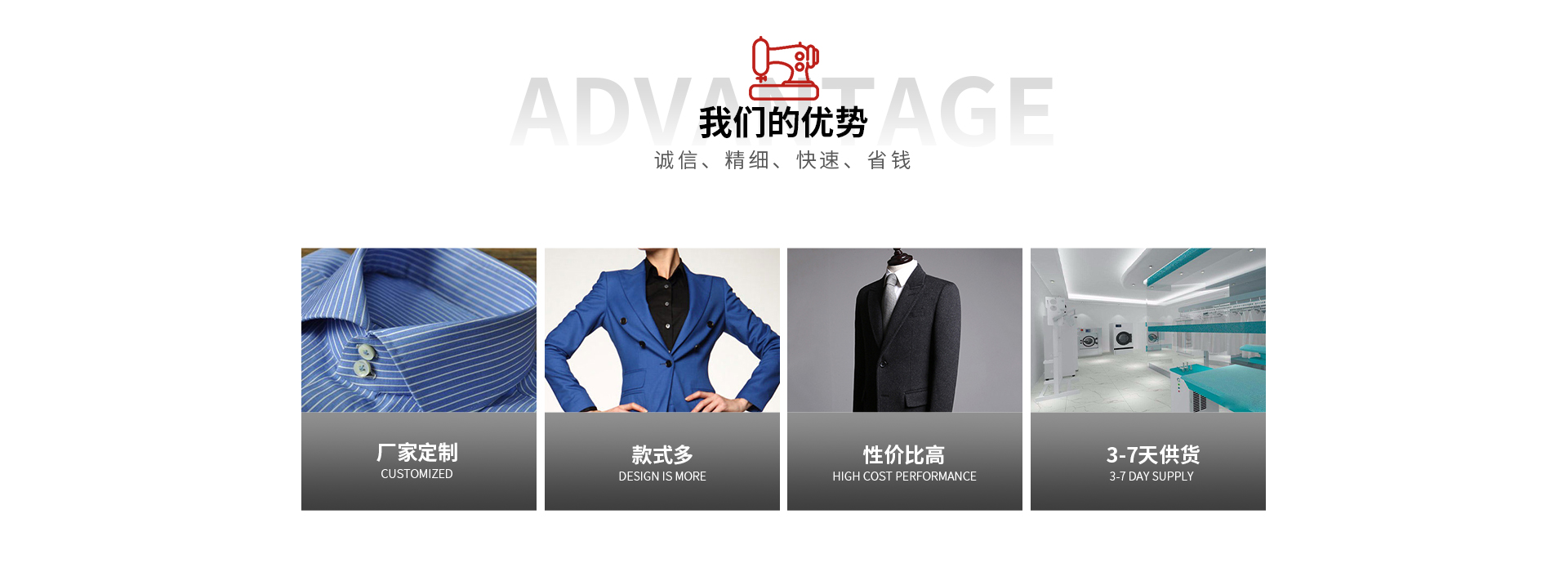 安徽七色錦服飾有限公司成立于2011年07月19日,公司位于安徽省合肥市包河工業區延安路17號,廠房面積約5000平方米,投資資金1000萬元。作為一家集服裝設計,生產,服務于一體的中、檔次高的西裝、襯衫企業,服務專業、顧客滿意”的經營宗旨、以“客戶為先、市場導向”為經營理念更好的服務于廣大消費者、依靠高超的技術,先進的設備,嚴格的管理,穩(wěn)定的產品質量,精細的制作工藝,周到的客戶服務贏取了廣消費者的信賴和好評.各類服裝服飾專業技術人員100多人,各類先進的生產設備150多臺,具有設計、制造各類服裝服飾的能力。公司是以從事中、檔次高的西服、襯衫、西褲、西裙、大衣、領帶、皮鞋等設計、生產、銷售一體化為主....